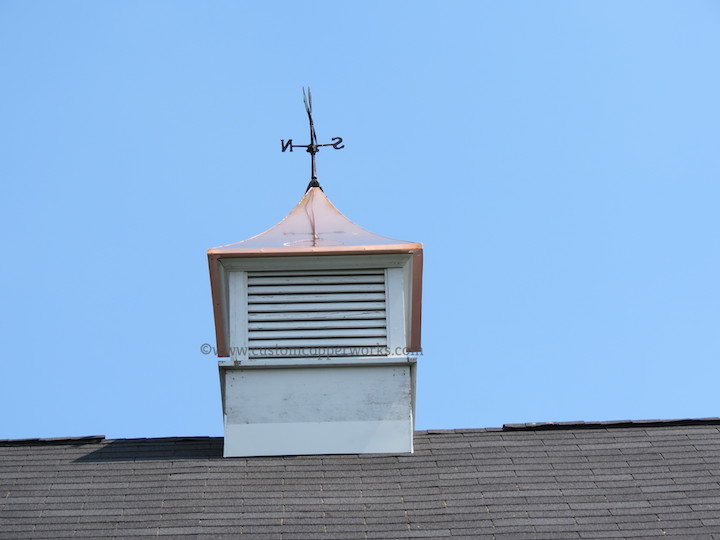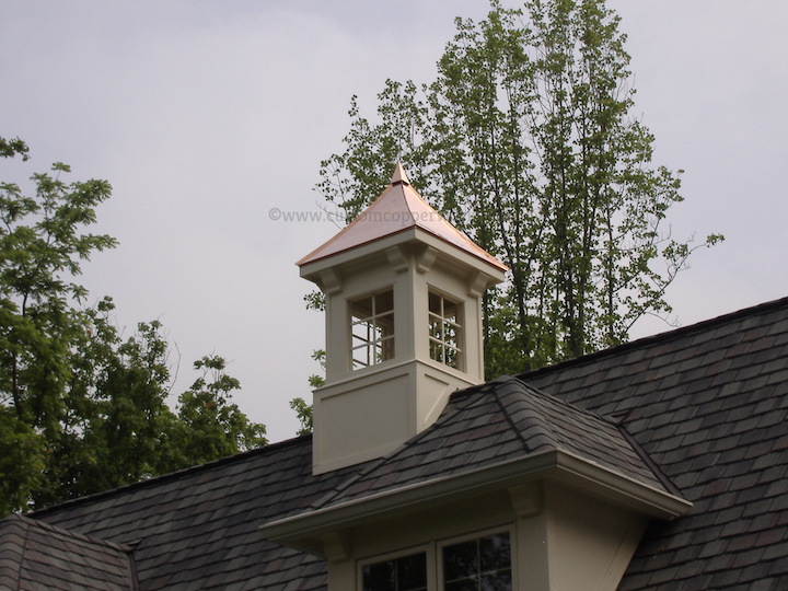 We also fabricate and install entire cupolas, and they are 100% copper exterior. This is so they never need to be painted or caulked. In our experience, the most common cause of cupola leakage or failure is lack of maintenance. They are, after all, relatively inaccessible.